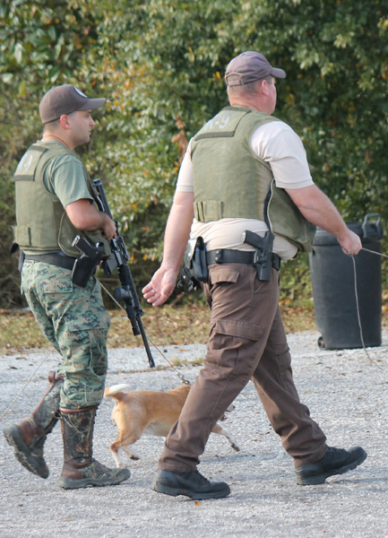 Pictured: A K-9 unit searches for a suspect Tuesday afternoon after the murder of a lottery store owner in Davisville. NorthEscambia.com photo, click to enlarge.