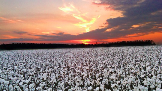 Pictured: The sun sets behind a Walnut Hill cotton field Friday evening, giving the appearance of “southern snow”. NorthEscambia.com photo, click to enlarge.