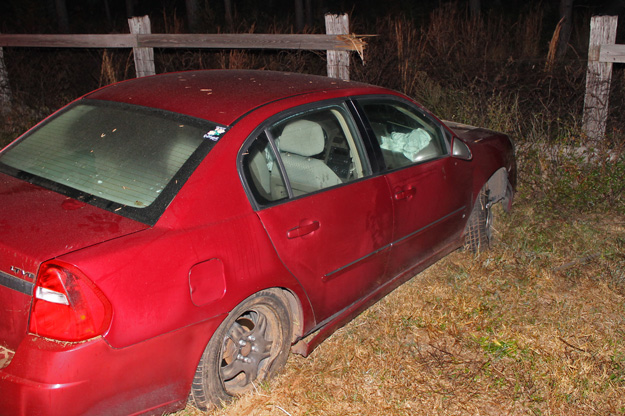 A 43-year old man apparently lost control of his car while southbound on Highway 97 just south of North Highway 99. He ran off the road into a ditch, crossed over the highway and struck a fence. The driver refused medical treatment at the scene.