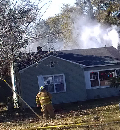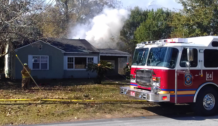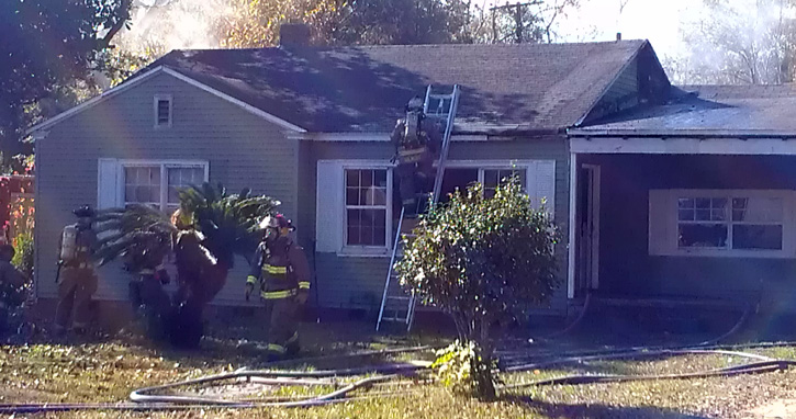 Flames were coming out of the attic of the home at the corner of Pace Parkway and Mintz Lane when the first firefighters arrived on scene about 12:40 Saturday afternoon.