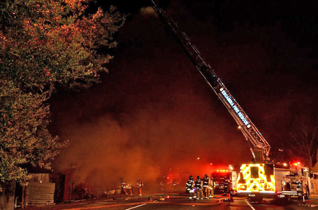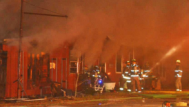 Firefighters fought the blaze, saying that furniture and items inside the building hampered their efforts. The fire apparently started in a building primarily used for storage adjacent to the main building.