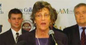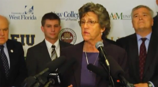 Pictured top: University of West Florida President Judy Bense at a Capitol press conference Wednesday in Tallahassee. Image courtesy The News Service of Florida for NorthEscambia.com, click to enlarge.