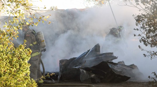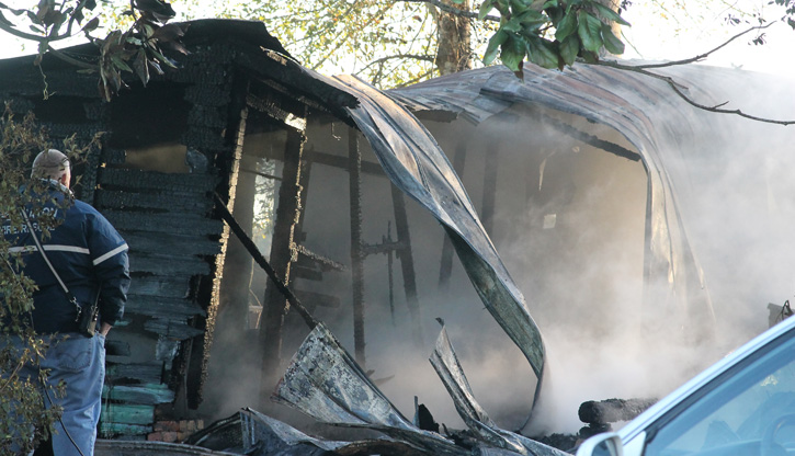 A small wood frame home on Sycamore Road at Jerkins Loop was fully involved and almost burned to the ground when the first firefighters arrived on scene just after 5 a.m.