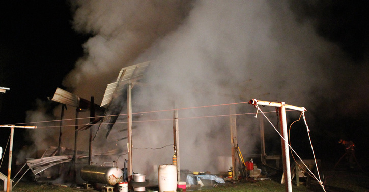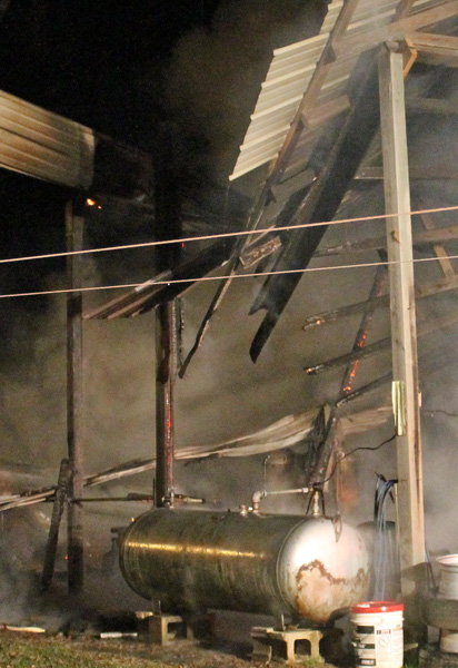 The 20×40 foot open barn, which was located just a few feet behind a mobile home, was a total loss before the first firefighters arrived on scene. The cause of the 4:35 a.m. fire on Morton Road, just south of State Line Road, is under investigation.