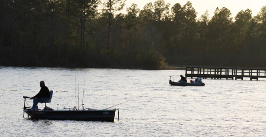 Fishermen on Lake Stone in Century in March.