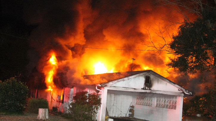 An early morning fire destroyed this home on Highway 97 in Walnut Hill. There were no injuries.