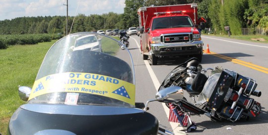 A Patriot Guard rider was injured in this crash on Highway 97 in Walnut Hill.