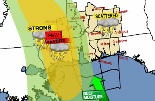 - Tonight: Showers and thunderstorms likely. Cloudy, with a low around 63. Southeast wind 10 to 15 mph, with gusts as high as 20 mph. Chance of precipitation is 70%.