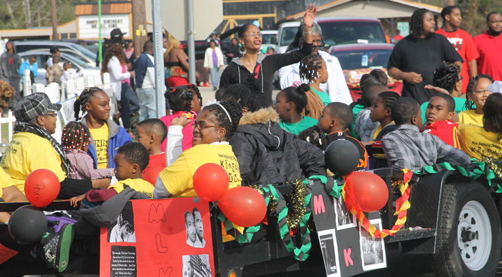 In Atmore, the 2013 Martin Luther King Jr. Day parade rolled through town to a memorial program and lunch at Escambia County High School. (Pictured top)