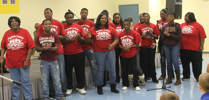 Pictured top: The annual MLK Day parade in Atmore Monday morning. Pictured inset: A volunteer paints inside the Carver Community Center in Century. Pictured below: The Pilgrim Lodge Youth Choir performs during a celebration in Century Monday morning. NorthEscambia.com photos, click to enlarge.