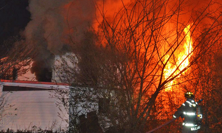 Pictured: Fire heavily damaged this home in the 700 block of Barrineau Park Road Friday night. NorthEscambia.com photos by Kristi Smith, click to enlarge.