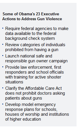 President Barack Obama is taking aim at gun violence with 23 executive orders expected to ignite a political fight with pro-gun groups and their supporters.