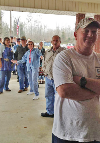 Pictured: Residents receive free trees during an Arbor Day tree giveaway Monday morning in Walnut Hill. Pictured inset: The line for the free trees stretched into the parking lot of the Walnut Hill Community Center. Courtesy photos for NorthEscambia.com, click to enlarge.