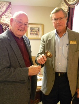 Pictured: Outgoing Century Chamber of Commerce President Benny Barnes (left) passes the gavel to new President Don Ripley. Courtesy photo for NorthEscambia.com, click to enlarge.