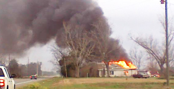 Fire destroyed an abandoned home in northern Santa Rosa County about 8:30 this morning. The home, located on Highway 89 near Allentown, was fully involved when the first units from the Allentown Volunteer Fire Department arrived on scene. There were no injuries reported. Reader submitted photo by Jeremy Wells, click to enlarge.