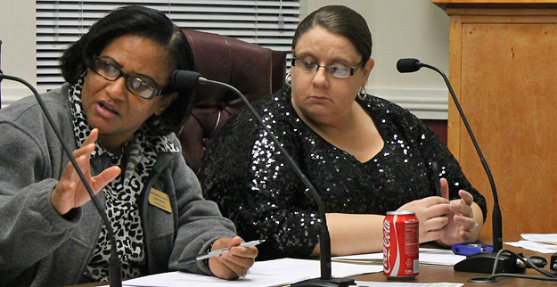 Pictured: Century Town Council members Sandra McMurry Jackson and Jacke Johnston at Monday night’s meeting. NorthEscambia.com photo, click to enlarge.
