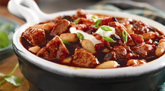 Smoky ingredients are all the rage, with fire-roasted tomatoes, bacon and chipotle peppers on the rise in restaurant menus across the country. Give this delicious trend the home-cooked treatment with Smoky Pork, Bacon and White Bean Chili, a simple recipe that takes only 20 minutes to prepare and can be conveniently made in the slow cooker.