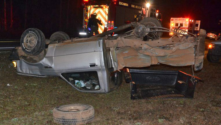 The accident happened just before 5:30 a.m. on Highway 95A just south of Quintette Road. The driver of a pickup truck ran off the roadway and overturned. One person was transported by ambulance to a Pensacola hospital with non-life threatening injuries.