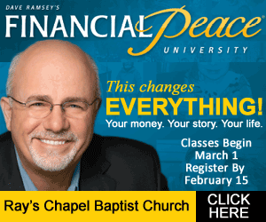 Ray’s Chapel Baptist Church in Bogia will offer classes from Dave Ramsey’s Financial Peace University beginning March 1. The registration deadline in February 15.
