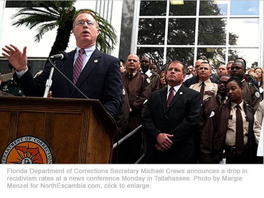 Fewer Florida prison inmates are re-offending after their release, Corrections Secretary Mike Crews said Monday.