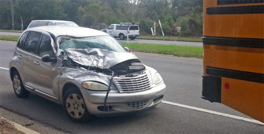 The Florida Highway Patrol said bus driver Barbara Jean Rogers, 53, of Cantonment was slowing with the bus yellow warning lights activated on North Davis Highway near Campus Drive at the time of the 9:05 a.m. accident. The FHP said 38-year old Kelly Marie O’Brien of Pace failed to observe the slowing bus and rear-ended itw ith her PT Cruiser.