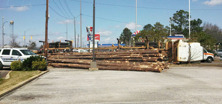 The brakes on the log truck went out. That is the reason the driver had to turn between Arby’s and KFC. The driver was trying to prevent anyone from getting seriously injured. I think he done a great job of taking control of the situation.
