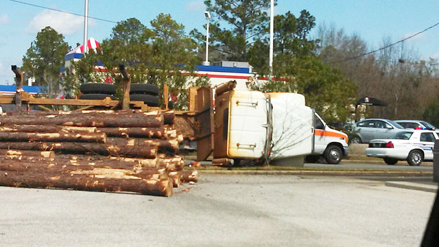 Glad no one was hurt. Unfortunately this will happen again because so many of the log truck drivers drive recklessly.