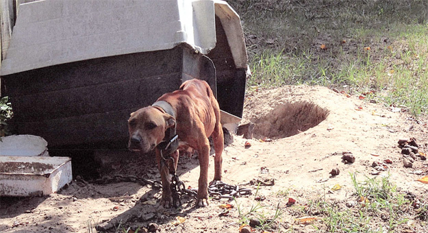 The proble of animal abuse is a saddening thing. I work for Escambia County AL and I travel all through the county. I have personally came upon this same situation. It was one of the most emotional experiences of my life. I cried for the animals (4 pit bulls) on chains, no water and no food for what looked like several weeks. But, I was also mad at the owners of the animals. Also what is bad is that this was a well populated area, people walked by these dogs everyday and did nothing but, had the nerve as the Humane Society was there trying to get them loaded to ask, “Can I have that dog?” It is someting I will never forget, to see these helpless animals tranquilized because they are scared and loaded up in the truck only to be put down because they are in such bad shape. Until the laws against animal cruelty are more serious, this will continue to happen. So Sad!
