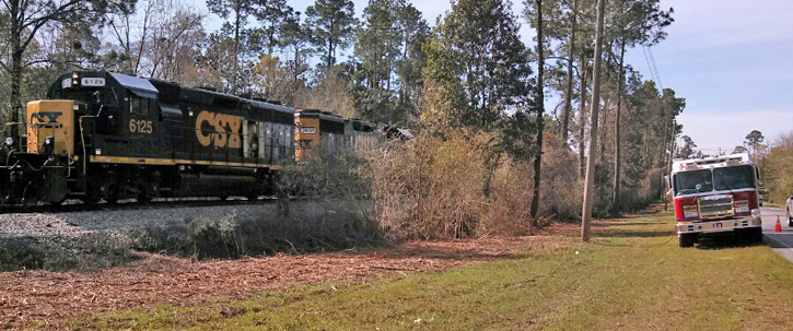 Engine 419 from the Cantonment Station of Escambia County Fire Rescue responded to Highway 95A near Jim Allen Elementary School Thursday morning to assist CSX after a train locomotive engine overheated. There was no fire, just a need for water to cool the engine.