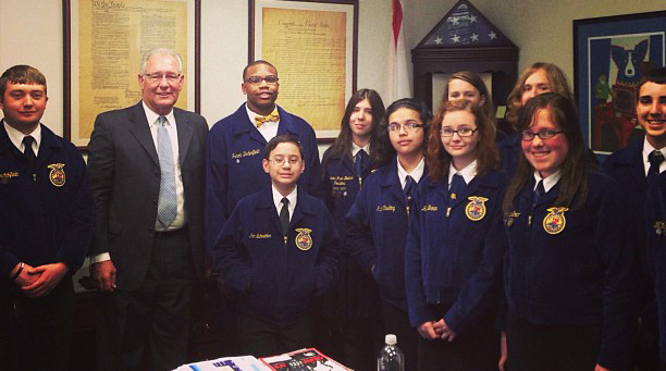 Students from the FFA chapters at Northview High, West Florida High and Ernest Ward Middle schools attended the annual “Ag On the Hill” event Tuesday in Tallahassee. The local FFA members were able to visit with state leaders, including Sen. Greg Evers (pictured above), Rep. Clay Ingram and Commission of Agriculture Adam Putnam. Ag on the Hill is presented annually by the Florida Association of Agricultural Educators, The University of Florida and the Florida Department of Agriculture and Consumer Services. Courtesy photo for NorthEscambia.com, click to enlarge.