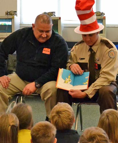 Century Correctional’s Assistant Warden Robert Flores and Officer Tony deGraaf read to Mrs. deGraaf’s kindergarten class at Jay Elementary School as part of the program. They read the popular Seuss book Green Eggs and Ham and gave each student a special treat. They also expressed the importance of learning to read and of a good education.