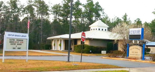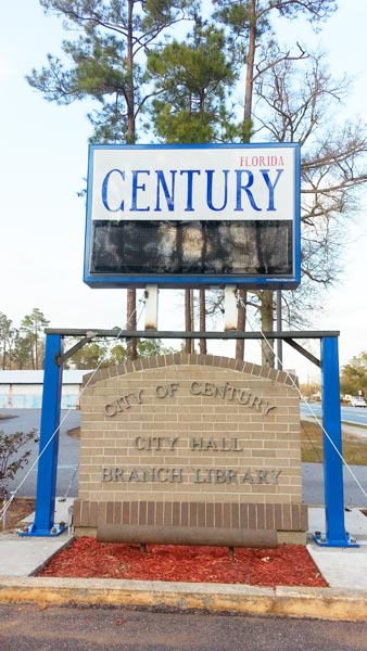 The Town of Century has installed a new scrolling message sign alongside at the entrance to the Century City Hall and the branch library. The variable message board will be used to display local announcements. NorthEscambia.com photos, click to enlarge.