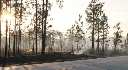 Pictured: A wildfire burned about 40 acres on Nokomis Road near Jakes Road Friday afternoon. NorthEscambia.com photos, click to enlarge.