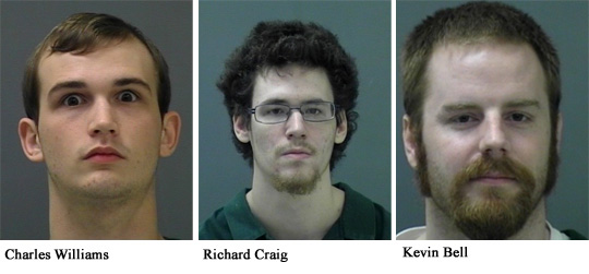 Charles Dylan Williams, age 19 of Walnut Hill, Richard Kevin Craig, age 21 of Bratt and Kevin Randall Bell, age 26 of Pensacola, were arrested on 52 outstanding warrants in Santa Rosa County. Each was each charged with multiple counts of burglary and larceny. Williams and Craig were also charged with fraudulent use of a credit card.