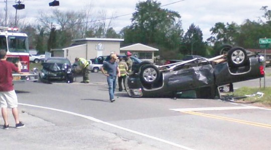 There were no injuries in a two-vehicle crash Friday afternoon in Molino. The crash involving a pickup and a car occurred just before 3 p.m. at the intersection of Highway 29 and Molino Road. The pickup came to rest upside down. The accident was investigated by the Florida Highway Patrol. Further details were not released. Reader submitted photo by Lynn J. Garrett, Sr. for NorthEscambia.com, click to enlarge.