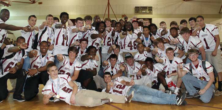 “For the first time in school history, you can say you are the state football champions,” Superintendent Malcolm Thomas said as he addressed the football players and student body. “You will always get to keep that pride knowing that you are part of something very, very special.”