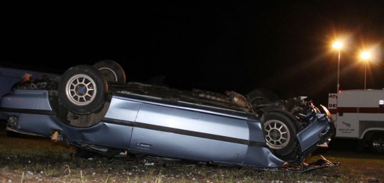 The accident happened just after 10 p.m. on College Street, between the railroad crossing and Ringold Street. The driver of the vehicle lost control, ran off the roadway, hit a ditch and overturned. The vehicle came to rest upside down in a yard. One occupant of the vehicle, described only as a black male, reportedly fled the scene on foot towards Florida.