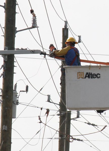 Pictured: Linemen work earlier this year on an electrical system upgrade in Walnut Hill. NorthEscambia.com file photos, click to enlarge.