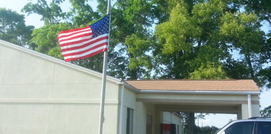 Residents across the area remembered Boston Tuesday and the tragic bombing at the finish line of the Boston Marathon on Monday. Pictured top: The 17th Avenue train trestle in Pensacola, commonly known as “Graffiti Bridge”, was painted with the message to “Pray for Boston”. And flags across the area were lowered to half staff upon an order from Gov. Rick Scott, including the Byrneville Community Center (pictured below). NorthEscambia.com photos, click to enlarge.