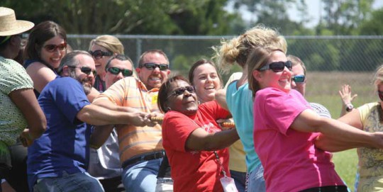 Pictured: Molino Park teachers, staff and volunteers (above) “defeated” a group of U.S. Marines during a game of tug-of-war at the school’s annual Field Day Friday. Submitted photos by Shawn Moyers for NorthEscambia.com, click to enlarge.