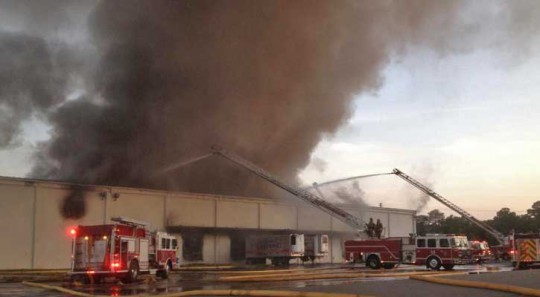 Fire ripped though a large commercial produce warehouse Friday afternoon on Amber Street, near Brent Lane and I-110 in Pensacola. Escambia County firefighters from as far as way Cantonment were dispatched to the blaze, where they were assisted by units from Santa Rosa County, the City of Pensacola and the U.S. Navy.