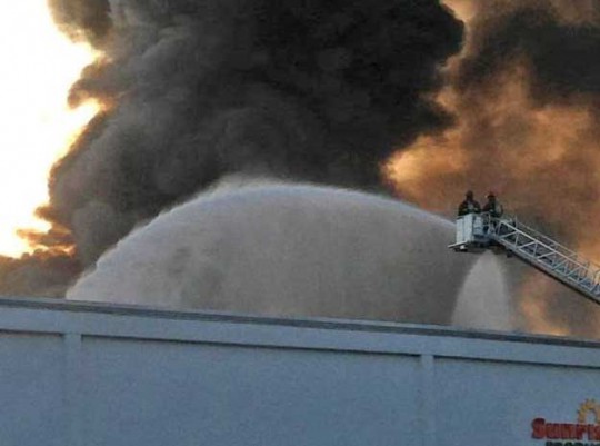 A possible explosion at the scene was reported as the fire started in the building used primarily by Sunrise Fresh Produce Co. Three smaller food companies also rent space in the 129,000 square foot building