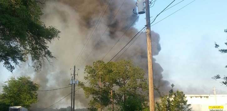 Pictured above and below: A warehouse fire on Amber Street near Brent Lane Friday afternoon. Reader submitted photos for NorthEscambia.com, click to enlarge.