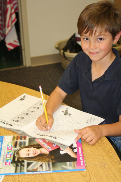 Pictured: Molino Park first grade student Matthew Dix works on Math-A-Thon problems. Submitted photo for NorthEscambia.com, click to enlarge.
