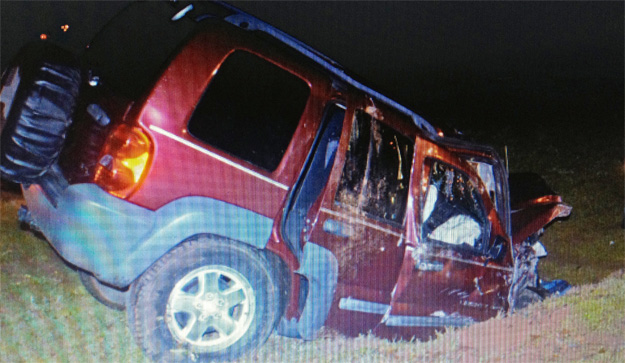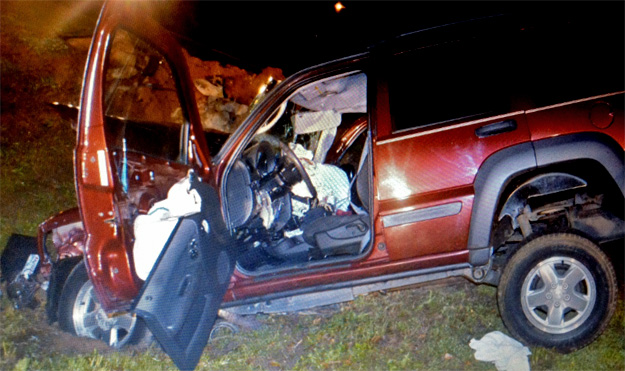 Mark Allen Ships, Jr. was traveling west on Molino Road near Chestnut Road about 3:30 a.m. on March 24 when he crossed over the eastbound lane and onto the shoulder. He continued on the shoulder until he struck a cement culvert and cement embankment with the front of his 2002 Jeep Liberty.