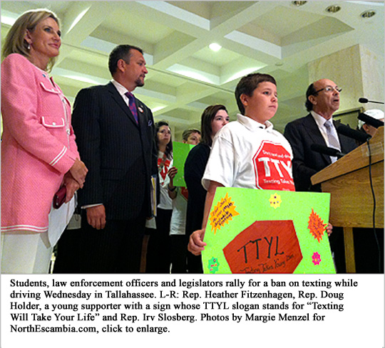 “It’s the beginning of the change that is necessary in our culture that people learning a new activity, whether it be driving or whether it be texting, that certain activities are appropriate and certain activities are inappropriate, and texting is inappropriate while behind the wheel of an automobile,” said Rep. Doug Holder, R-Sarasota, the sponsor of the House legislation.