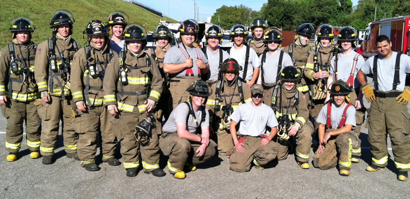 The training at the Pensacola Fire Department Training Grounds gave the students their first exposure to interior firefighting with actual flames and smoke.