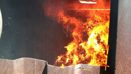 Above: Fire rages in the “burn can” for a volunteer training class.