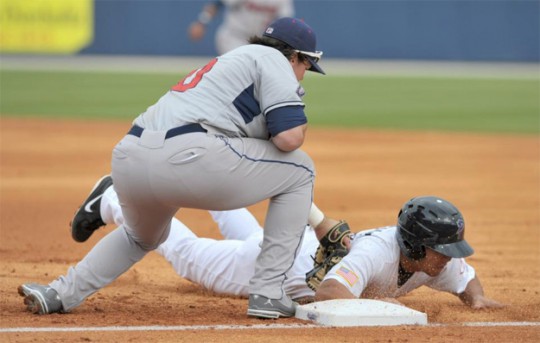 After two days of struggling at the dish, the Pensacola Blue Wahoos used a balanced attack in a 5-4 win over the Tennessee Smokies on Sunday afternoon in front of the fourth straight sellout crowd to start the 2013 campaign at Pensacola Bayfront Stadium. It wasn’t without stress, however, as Tennessee had the tying and go-ahead runs on base in the ninth before Curtis Partch got Jonathan Mota to ground out to end the game.