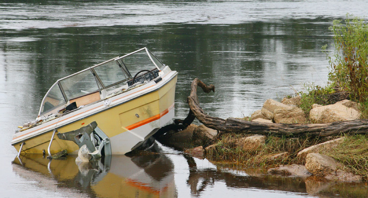 Pictured top: A logjam stretches bank to bank, blocking the Escambia River near McDavid (courtesy photo). Pictured below: An abandoned boat along the Escambia River. NorthEscambia.com file photo, click to enlarge.